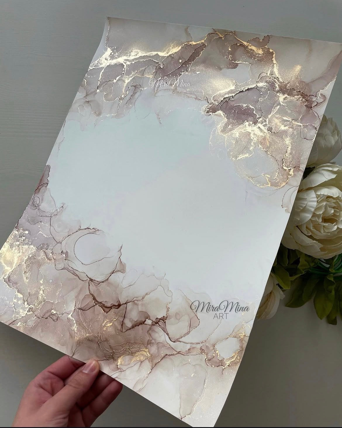In this workshop, I will show you the basics of working with alcohol ink on paper. The liquid ink reacts spontaneously to movement, air, and the surface, enabling vibrant color gradients, organic shapes, and surprising effects.